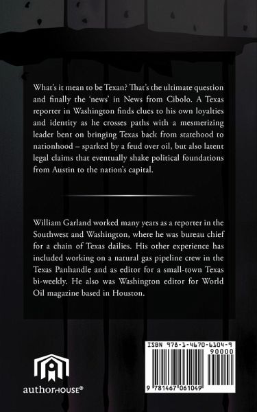 What's it mean to be Texan? That's the ultimate question and finally the 'news' in News from Cibolo. A Texas reporter in Washington finds clues to his own loyalties and identity as he crosses paths with a mesmerizing leader bent on bringing Texas back from statehood to nationhood - sparked by a feud over oil, but also latent legal claims that eventually shake political foundations from Austin to the nation's capital.