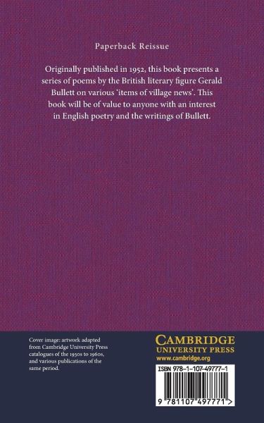 Originally published in 1952, this book presents a series of poems by the British literary figure Gerald Bullett on various 'items of village news'. This book will be of value to anyone with an interest in English poetry and the writings of Bullett.