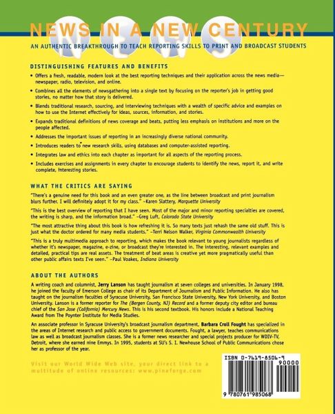 This comprehensive book provides a wealth of exercises and assignments for teaching students reporting skills, combining successful, tried and tested techniques with an awareness of new realities and technologies in broadcast and print. The authors take the student through a writing process initiated by ideas rather than concepts of correct writing, covering: writing in different media, including the Internet; news beats; sensitivity and the diverse national community; law and ethics; and new research skills, including databases and computer-assisted reporting.