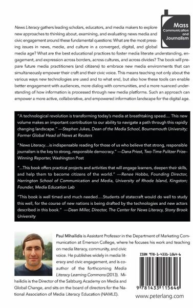 «This book is well timed and much needed. Paul Mihailidis has harnessed the exciting momentum of the scholars and teachers around the globe who are documenting and sharing the ways that digital technology has de-emphasized institutional journalism and restored the voices of the voiceless. This will be an important text for media scholars and practitioners as they make sense of the ways dissent has re-made the world with the only weapon that ever mattered and the only bulwark against tyranny: information widely shared. Students of statecraft would do well to study this well, for the course of new nations is being drafted by the technologies and new actors described in this book.» (Dean Miller, Director, The Center for News Literacy, Stony Brook University)