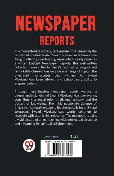 In a momentous discovery, rare manuscripts penned by the renowned spiritual leader Swami Vivekananda have come to light, offering a profound glimpse into his early career as a writer. Entitled Newspaper Reports, this well-written collection reveals the luminary's captivating insights and remarkable observations on a diverse range of topics. The unearthed manuscripts bear witness to Swami Vivekananda's keen intellect and extraordinary ability to engage readers. Through these timeless newspaper reports, we gain a deeper understanding of Swami Vivekananda's unwavering commitment to social reform,…mehr