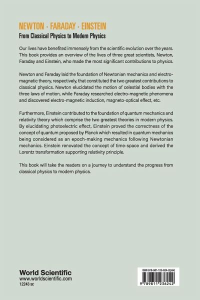 Our lives have benefited immensely from the scientific evolution over the years. This book provides an overview of the lives of three great scientists, Newton, Faraday and Einstein, who made the most significant contributions to physics. Newton and Faraday laid the foundation of Newtonian mechanics and electro-magnetic theory, respectively, that constituted the two greatest contributions to classical physics. Newton elucidated the motion of celestial bodies with the three laws of motion, while Faraday researched electro-magnetic phenomena and discovered electro-magnetic induction, magneto-optical effect, etc. Furthermore, Einstein contributed to the foundation of quantum mechanics and relativity theory which comprise the two greatest theories in modern physics. By elucidating photoelectric effect, Einstein proved the correctness of the concept of quantum proposed by Planck which resulted in quantum mechanics being considered as an epoch-making mechanics following Newtonian mechanics. Einstein renovated the concept of time-space and derived the Lorentz transformation supporting relativity principle. This book will take the readers on a journey to understand the progress from classical physics to modern physics.