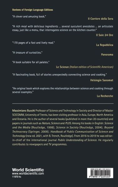 A highly rigorous, yet original and entertaining book that explores the connection between food and science. Why has science forcefully entered the kitchen from a certain moment in history? Why do scientists often use images and metaphors drawn from gastronomy? What is the common thread that connects scientific experiments to mouth-watering recipes? What has futurist cooking got in common with molecular gastronomy? Experiments with coffee, controversies over beer and chocolate recipes guarded as if they were secret patents are the ingredients of this original, surprising account of the intersections between gastronomy and research, between laboratories and kitchens.