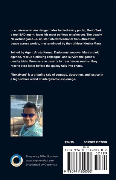 In a universe where danger hides behind every portal, Dario Trek, a top ISAD agent, faces his most perilous mission yet. The deadly NexaHunt game-a sinister interdimensional trap-threatens peace across worlds, masterminded by the ruthless Klesha Mara. ¿ Joined by Agent Arista Karma, Dario must uncover Mara's dark agenda, rescue a missing colleague, and survive the game's deadly trials. From serene deserts to treacherous realms, they race to stop Mara before the galaxy falls into chaos. ¿ "NexaHunt" is a gripping tale of courage, deception, and justice in a high-stakes world of intergalactic espionage.
