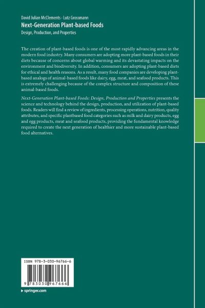 Next-Generation Plant-based Foods: Design, Production and Properties presents the science and technology behind the design, production, and utilization of plant-based foods. Readers will find a review of ingredients, processing operations, nutrition, quality attributes, and specific plant-based food categories such as milk and dairy products, egg and egg products, meat and seafood products, providing the fundamental knowledge required to create the next generation of healthier and more sustainable plant-based food alternatives.
