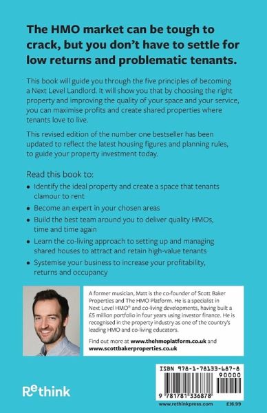 The HMO market can be tough to crack, but you don't have to settle for low returns and problematic tenants. This book will guide you through the five principles of becoming a Next Level Landlord. It will show you that by choosing the right property and improving the quality of your space and your service, you can maximise profits and create shared properties where tenants love to live. This revised edition of the number one bestseller has been updated to reflect the latest housing figures and planning rules, to guide your property investment today. Read this book to: ¿ Identify the ideal property and create a space that tenants clamour to rent ¿ Become an expert in your chosen areas ¿ Build the best team around you to deliver quality HMOs, time and time again ¿ Learn the co-living approach to setting up and managing shared houses to attract and retain high-value tenants ¿ Systemise your business to increase your profitability, returns and occupancy