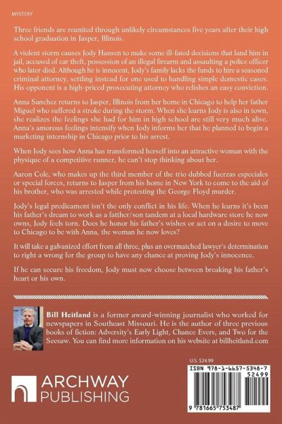 Three friends are reunited through unlikely circumstances five years after their high school graduation in Jasper, Illinois. A violent storm causes Jody Hansen to make some ill-fated decisions that land him in jail, accused of car theft, possession of an illegal firearm and assaulting a police officer who later died. Although he is innocent, Jody's family lacks the funds to hire a seasoned criminal attorney, settling instead for one used to handling simple domestic cases. His opponent is a high-priced prosecuting attorney who relishes an easy conviction. Anna Sanchez returns to Jasper, Illinois from her home in Chicago to help her father Miguel who suffered a stroke during the storm. When she learns Jody is also in town, she realizes the feelings she had for him in high school are still very much alive. Anna's amorous feelings intensify when Jody informs her that he planned to begin a marketing internship in Chicago prior to his arrest. When Jody sees how Anna has transformed herself into an attractive woman with the physique of a competitive runner, he can't stop thinking about her. Aaron Cole, who makes up the third member of the trio dubbed fuerzas especiales or special forces, returns to Jasper from his home in New York to come to the aid of his brother, who was arrested while protesting the George Floyd murder. Jody's legal predicament isn't the only conflict in his life. When he learns it's been his father's dream to work as a fatther/son tandem at a local hardware store he now owns, Jody feels torn. Does he honor his father's wishes or act on a desire to move to Chicago to be with Anna, the woman he now loves? It will take a galvanized effort from all three, plus an overmatched lawyer's determination to right a wrong for the group to have any chance at proving Jody's innocence. If he can secure his freedom, Jody must now choose between breaking his father's heart or his own.