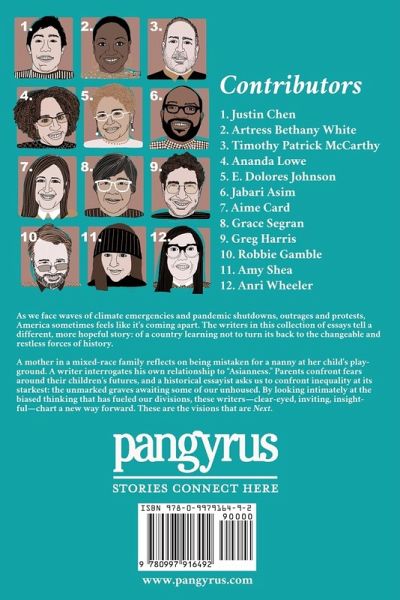 As it faces waves of climate emergencies and pandemic shutdowns, outrages and protests, America sometimes feels like it's coming apart. The writers in this collection of essays tell a different, more hopeful story: of a country learning not to turn its back to the changeable and restless forces of history. A mixed-race mother reflects on being mistaken for a nanny at her children's playground. A writer interrogates his own relationship to "Asianness." Parents confront fears around their children's futures, and a historical essay asks us to confront inequality at its starkest: the unmarked graves awaiting some of our unhoused. By looking intimately at the biased thinking that has fueled our divisions, these writers-clear-eyed, inviting, insightful-chart a new way forward. These are the visions that are Next.