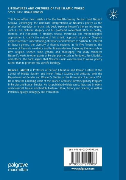 This book offers new insights into the twelfth-century Persian poet Nezami Ganjavi. Challenging the dominant interpretation of Nezami's poetry as the product of mysticism or Islam, this book explores Nezami's literary techniques such as his pictorial allegory and his profound conceptualization of poetry, rhetoric, and eloquence. It employs several theoretical and methodological approaches to clarify the nature of his artistic approach to poetry. Chapters explore Nezami's understanding of rhetoric and literature as Sakhon, his interest in literary genres, the diversity of themes explored in his Five Treasures, the sources of Nezami's creativity, and his literary devices. Exploring themes such as love, religion, science, wine, gender, and philosophy, this study compares Nezami's works to other giants of Persian poetry such as Ferdowsi, Jami, Rudaki, and others. The book argues that Nezami's main concern was to weave poetry rather than to promote any specific ideology.