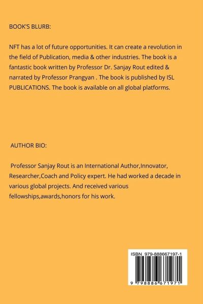 NFT has a lot of future opportunities. It can create a revolution in the field of Publication, media & other industries. The book is a fantastic book written by Professor Dr. Sanjay Rout edited & narrated by Professor Prangyan . The book is published by ISL PUBLICATIONS. The book is available on all global platforms.