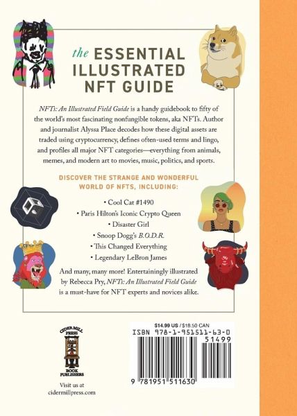 NFTs - "non-fungible tokens" representing digital assets traded in cryptocurrency - aren't going anywhere. And now, for the first time ever, there's a handy pocket field guide! NFTs: An Illustrated Field Guide is a beautifully illustrated guide to NFTs-a must-have for anyone interested in entering the NFT universe and learning about this incredible new trend that, for many people, may seem futuristic and obscure at first! Non-fungible tokens, so called because they are uniquely coded files "tokenized," or stored on a blockchain ledger, are a new way to create, sell, trade, and collect unique digital assets. Each NFT can be traced by anyone to its owner by an imbedded digital code within it. Why "non-fungible"? Because, unlike a "fungible" form of currency like the US dollar, NFTs cannot be swapped any one for any other. Instead, each unique NFT must be purchased with cryptocurrencies like Bitcoin and Ethereum, and on a special online trading platform. Written by finance expert Alyssa Place, and beautifully illustrated by Rebecca Pry, this field guide will walk you through the various categories of NFTS, like collectibles, art, land, sports, and more. Inside this elegant paperback, you'll find profiles on individual NFTs, each showcasing a full-page illustration, plus definitions of NFT terms, information on how and where to find NFTs, and how to collect them. It's a complicated but excited world out there, and this visually stunning field guide will help you join the fun!?