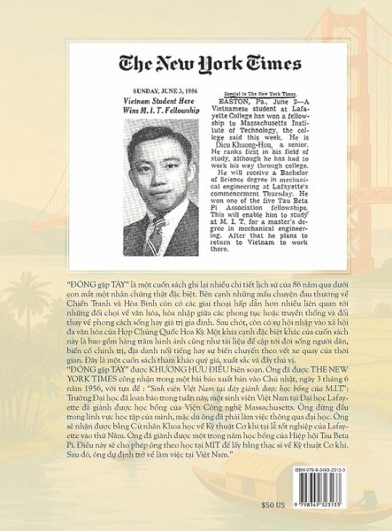 "¿ÔNG g¿p TÂY" là m¿t cu¿n sách ghi l¿i nhi¿u chi ti¿t l¿ch s¿ c¿a 86 n¿m qua d¿¿i con m¿t m¿t nhân ch¿ng th¿t ¿¿c bi¿t. Bên c¿nh nh¿ng m¿u chuy¿n ¿au th¿¿ng v¿ Chi¿n Tranh và Hòa Bình còn có các giai thöi h¿p d¿n h¿n nhi¿u liên quan t¿i nh¿ng ¿¿i ch¿i v¿ v¿n hóa, hòa nh¿p gi¿a các phong t¿c höc truy¿n th¿ng và ¿¿i thay v¿ phong cách s¿ng hay giá tr¿ gia ¿ình. Sau chót, còn có s¿ h¿i nh¿p vào xã h¿i ¿a v¿n hóa c¿a H¿p Ch¿ng Qu¿c Hoa K¿. M¿t khía c¿nh ¿¿c bi¿t khác c¿a cu¿n sách này là bao g¿m hàng tr¿m hình ¿nh c¿ng nh¿ tài li¿u ¿¿ c¿p t¿i ¿¿i s¿ng ng¿¿i dân, bi¿n c¿ chính tr¿, ¿¿a danh n¿i ti¿ng hay s¿ bi¿n chuy¿n theo v¿t xe quay c¿a th¿i gian. ¿ây là m¿t cu¿n sách tham kh¿o quý giá, xu¿t s¿c và ¿¿y thú v¿."¿ÔNG g¿p TÂY" ¿¿¿c KH¿¿NG H¿U ¿I¿U biên sön. Ông ¿ã ¿¿¿c THE NEW YORK TIMES công nh¿n trong m¿t bài báo xu¿t b¿n vào Ch¿ nh¿t, ngày 3 tháng 6 n¿m 1956, v¿i t¿a ¿¿ "Sinh viên Vi¿t Nam t¿i ¿ây giành ¿¿¿c h¿c b¿ng c¿a M.I.T.": "Tr¿¿ng ¿¿i h¿c ¿ã loan báo trong tu¿n này, m¿t sinh viên Vi¿t Nam t¿i ¿¿i h¿c Lafayette ¿ã giành ¿¿¿c h¿c b¿ng c¿a Vi¿n Công ngh¿ Massachusetts. Ông ¿¿ng ¿¿u trong l¿nh v¿c h¿c t¿p c¿a mình, m¿c dù ông ¿ã ph¿i làm vi¿c thông qua ¿¿i h¿c. Ông s¿ nh¿n ¿¿¿c b¿ng C¿ nhân Khoa h¿c v¿ K¿ thu¿t C¿ khí t¿i l¿ t¿t nghi¿p c¿a Lafayette vào th¿ N¿m. Ông ¿ã giành ¿¿¿c m¿t trong n¿m h¿c b¿ng c¿a Hi¿p h¿i Tau Beta Pi. ¿i¿u này s¿ cho phép ông theo h¿c t¿i MIT ¿¿ l¿y b¿ng th¿c s¿ v¿ K¿ thu¿t C¿ khí. Sau ¿ó, ông d¿ ¿¿nh tr¿ v¿ làm vi¿c t¿i Vi¿t Nam."