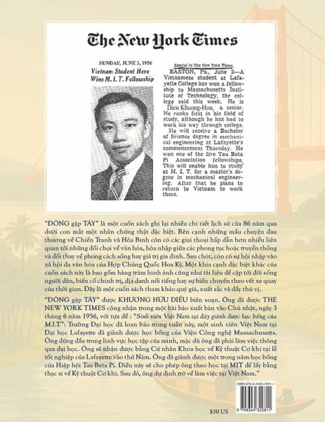"¿ÔNG g¿p TÂY" là m¿t cu¿n sách ghi l¿i nhi¿u chi ti¿t l¿ch s¿ c¿a 86 n¿m qua d¿¿i con m¿t m¿t nhân ch¿ng th¿t ¿¿c bi¿t. Bên c¿nh nh¿ng m¿u chuy¿n ¿au th¿¿ng v¿ Chi¿n Tranh và Hòa Bình còn có các giai thöi h¿p d¿n h¿n nhi¿u liên quan t¿i nh¿ng ¿¿i ch¿i v¿ v¿n hóa, hòa nh¿p gi¿a các phong t¿c höc truy¿n th¿ng và ¿¿i thay v¿ phong cách s¿ng hay giá tr¿ gia ¿ình. Sau chót, còn có s¿ h¿i nh¿p vào xã h¿i ¿a v¿n hóa c¿a H¿p Ch¿ng Qu¿c Hoa K¿. M¿t khía c¿nh ¿¿c bi¿t khác c¿a cu¿n sách này là bao g¿m hàng tr¿m hình ¿nh c¿ng nh¿ tài li¿u ¿¿ c¿p t¿i ¿¿i s¿ng ng¿¿i dân, bi¿n c¿ chính tr¿, ¿¿a danh n¿i ti¿ng hay s¿ bi¿n chuy¿n theo v¿t xe quay c¿a th¿i gian. ¿ây là m¿t cu¿n sách tham kh¿o quý giá, xu¿t s¿c và ¿¿y thú v¿."¿ÔNG g¿p TÂY" ¿¿¿c KH¿¿NG H¿U ¿I¿U biên sön. Ông ¿ã ¿¿¿c THE NEW YORK TIMES công nh¿n trong m¿t bài báo xu¿t b¿n vào Ch¿ nh¿t, ngày 3 tháng 6 n¿m 1956, v¿i t¿a ¿¿ "Sinh viên Vi¿t Nam t¿i ¿ây giành ¿¿¿c h¿c b¿ng c¿a M.I.T.": "Tr¿¿ng ¿¿i h¿c ¿ã loan báo trong tu¿n này, m¿t sinh viên Vi¿t Nam t¿i ¿¿i h¿c Lafayette ¿ã giành ¿¿¿c h¿c b¿ng c¿a Vi¿n Công ngh¿ Massachusetts. Ông ¿¿ng ¿¿u trong l¿nh v¿c h¿c t¿p c¿a mình, m¿c dù ông ¿ã ph¿i làm vi¿c thông qua ¿¿i h¿c. Ông s¿ nh¿n ¿¿¿c b¿ng C¿ nhân Khoa h¿c v¿ K¿ thu¿t C¿ khí t¿i l¿ t¿t nghi¿p c¿a Lafayette vào th¿ N¿m. Ông ¿ã giành ¿¿¿c m¿t trong n¿m h¿c b¿ng c¿a Hi¿p h¿i Tau Beta Pi. ¿i¿u này s¿ cho phép ông theo h¿c t¿i MIT ¿¿ l¿y b¿ng th¿c s¿ v¿ K¿ thu¿t C¿ khí. Sau ¿ó, ông d¿ ¿¿nh tr¿ v¿ làm vi¿c t¿i Vi¿t Nam."