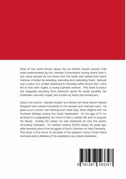 Most of the world knows about the six million Jewish people that were exterminated by the German Government during World War II, but many people do not know that the Nazis also persecuted black German children by arresting, branding and castrating them. Samuel was a black U.S. soldier stationed in Germany after World War I who fell in love with Ingrid, a young German woman. This book is about the tragedies resulting from Samuel's quest for racial equality, his forbidden love with Ingrid, and racism by Nazis and Americans.