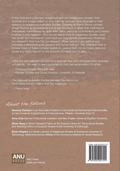 In this collection, Indigenous and non-Indigenous scholars from Australia and Europe reflect on how their life histories have impacted their research in Indigenous Australian Studies. Drawing on Pierre Nora's concept of ego-histoire as an analytical tool, contributors lay open their paths, personal commitments and passion involved in their resea...