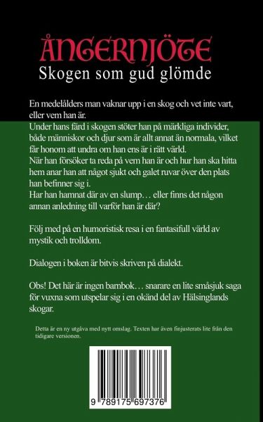 Följ med på en humoristisk resa i en fantasifull värld av mystik och trolldom. En medelålders man vaknar upp i en skog och vet inte vart eller vem han är. Under hans färd i skogen stöter han på märkliga individer, både människor och djur som är allt annat än normala, vilket får honom att undra om han ens är i rätt värld. När han försöker ta reda på vem han är och hur han ska hitta hem anar han att det ruvar något sjukt och galet över den plats han befinner sig i. Har han hamnat där av en slump... eller finns det en anledning till varför han är där? Dialogen är bitvis på dialekt. Obs! Det här är ingen barnbok, då grovt språk förekommer. Det är snarare en lite småsjuk saga för vuxna som utspelar sig i en okänd del av Hälsinglands skogar. Det här är en nyutgåva med små finjusteringar samt nytt omslag.