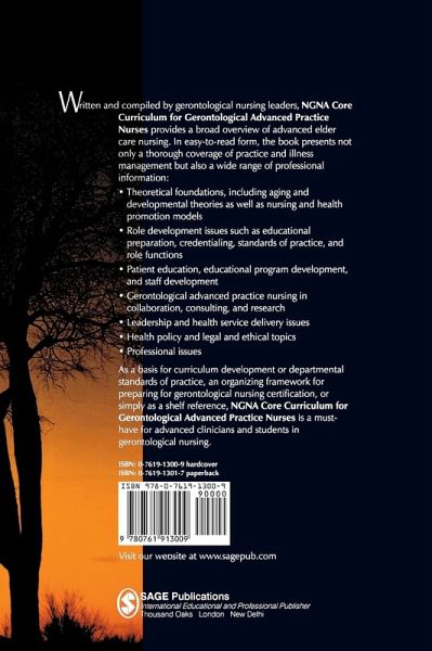 Written and compiled by gerontologic nursing leaders, the NGNA Core Curriculum for Gerontological Advanced Practice Nurses provides a broad overview of advanced elder care nursing. In easy-to-scan outline form, the book presents not only a thorough coverage of practice and illness management but also a wide range of professional information.