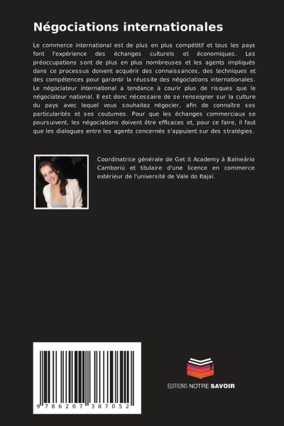 Le commerce international est de plus en plus compétitif et tous les pays font l'expérience des échanges culturels et économiques. Les préoccupations sont de plus en plus nombreuses et les agents impliqués dans ce processus doivent acquérir des connaissances, des techniques et des compétences pour garantir la réussite des négociations internationales. Le négociateur international a tendance à courir plus de risques que le négociateur national. Il est donc nécessaire de se renseigner sur la culture du pays avec lequel vous souhaitez négocier, afin de connaître ses particularités et ses coutumes. Pour que les échanges commerciaux se poursuivent, les négociations doivent être efficaces et, pour ce faire, il faut que les dialogues entre les agents concernés s'appuient sur des stratégies.