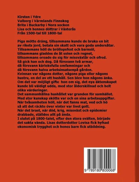 Förr i tiden är en väldigt lång tid. Förr i tiden var det svårt och eländigt. Förr i tiden var det glädje och överdådiga fester. Men ingen levde förr i tiden, de levde alla i den modernatse av tider. I Ydre socken i södra Östergötland blev Kirsten en av våra första prästfruar. Hon levde under det omvälvande och krigiska 1500-talet och fick ett dramatiskt slut. I Lekvattnet i Fryksände socken i Värmlands Finnskog levde Valborg till 1676 när hennes man mördades i ett bråk med politiska förtecken. Livet förändrades och hon flyttade till Gräsmark i Sunne socken och ett nytt liv med en riktig…mehr