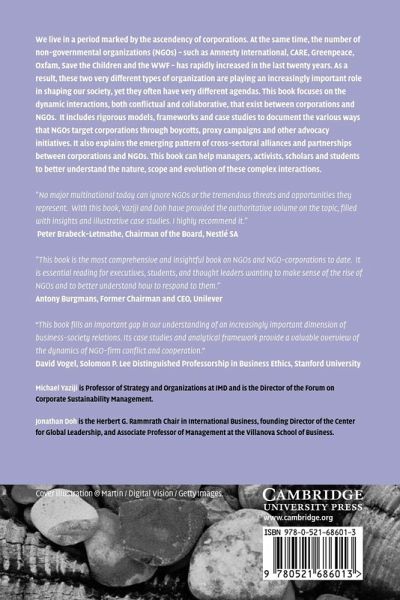 Acknowledgements List of tables List of figures Preface Part I. Understanding NGOs: 1. Classifying NGOs: definitions, typologies and networks 2. The emergence of NGOs in the context of business-government - societal relationships 3. The emergence of NGOs in the context of ethical and institutional complexity Case illustration: genetically modified organisms, social movements and NGOs Case illustration: protecting the people: environmental NGOs and TXU energy Part II. NGO Advocacy Campaigns: 4. NGO campaigns against corporations and (de-) legitimacy 5. How do they do it? Understanding the power and influence of radical advocacy NGOs 6. NGO campaign types and company responses Case illustration: PETA and KFC Case illustration: Coca-Cola in India Part III. NGO-Corporate Engagement: 7. Corporate-NGO engagements: from conflict to collaboration 8. Globalization, multinationals and NGOs: the next wave Case illustration: conflict diamonds Case illustration: Unilever in Indonesia Case illustration: microfinance and poverty reduction Part IV. The Future of Corporate-NGO Relations: 9. The future of corporate-NGO relations Index.