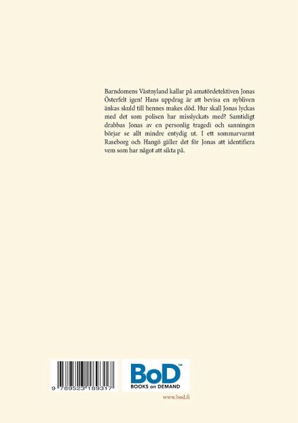 Barndomens Västnyland kallar på amatördetektiven Jonas Österfelt igen! Hans uppdrag är att bevisa en nybliven änkas skuld till hennes makes död. Hur skall Jonas lyckas med det som polisen har misslyckats med? Samtidigt drabbas Jonas av en personlig tragedi och sanningen börjar se allt mindre entydig ut. I ett sommarvarmt Raseborg och Hangö gäller det för Jonas att identifiera vem som har något att sikta på.