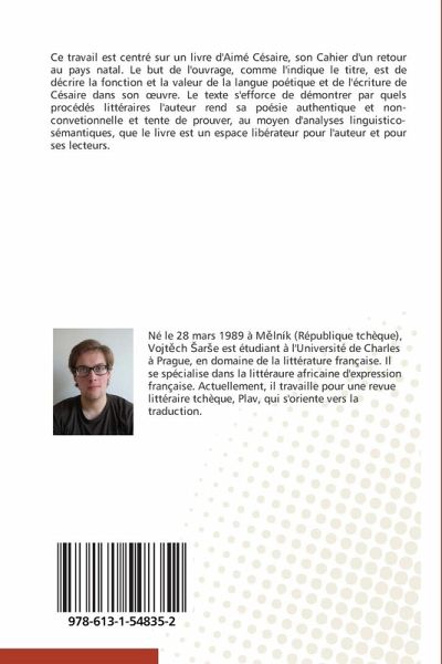 Ce travail est centré sur un livre d'Aimé Césaire, son Cahier d'un retour au pays natal. Le but de l'ouvrage, comme l'indique le titre, est de décrire la fonction et la valeur de la langue poétique et de l'écriture de Césaire dans son uvre. Le texte s'efforce de démontrer par quels procédés littéraires l'auteur rend sa poésie authentique et non-convetionnelle et tente de prouver, au moyen d'analyses linguistico-sémantiques, que le livre est un espace libérateur pour l'auteur et pour ses lecteurs.