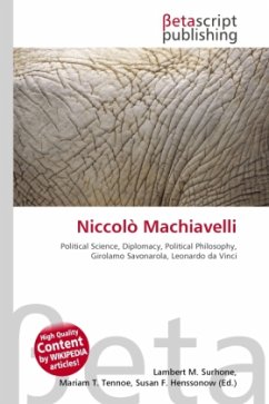 High Quality Content by WIKIPEDIA articles! Niccolò di Bernardo dei Machiavelli (3 May 1469 21 June 1527) was an Italian philosopher/writer, and is considered one of the main founders of modern political science. He was a diplomat, political philosopher, musician, and a playwright, but foremost, he was a civil servant of the Florentine Republic. In June of 1498, after the ouster and execution of Girolamo Savonarola, the Great Council elected Machiavelli as Secretary to the second Chancery of the Republic of Florence.