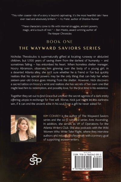 Nicholas Theodoulos is an immortal savior in desperate need of saving. All the power, wisdom, and even the favor of the gods is not enough when 1,700 years of heartache have left marks on his soul. But Noory Abramson, a streetwise woman with a sacred tattoo and a touch of grace, steps from the shadows, not knowing if she's arrived in time to save him or end him for good. With a heart grown as heavy as his, either fate might do. When Noory observes Nick grieving over the body of a young girl in a deserted Atlanta alley, she isn't sure whether he is friend or foe. However, she quickly realizes his special powers to rescue children and rain down vengeance on those that harm them may be the only thing that can help her when one of her charges, sixteen-year-old Grace, goes missing from the local homeless shelter. Soon, Nick discovers Noory has secrets of her own: one that might lead him to redemption, and possibly love, for the first time in his painful existence. In their world, a gift looks a lot like a curse, and Noory must reach Nick before his gift consumes him.