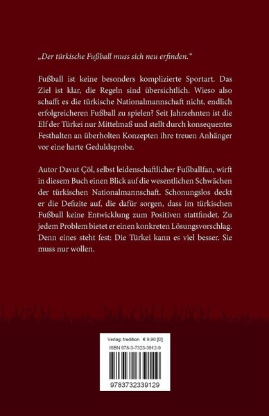 Fußball ist keine besonders komplizierte Sportart. Das Ziel ist klar, die Regeln sind übersichtlich. Wieso also schafft es die türkische Nationalmannschaft nicht, endlich erfolgreicheren Fußball zu spielen? Seit Jahrzehnten ist die Elf der Türkei nur Mittelmaß und stellt durch konsequentes Festhalten an überholten Konzepten ihre treuen Anhänger vor eine harte Geduldsprobe. Autor Davut Cöl, selbst leidenschaftlicher Fußballfan, wirft in diesem Buch einen Blick auf die wesentlichen Schwächen der türkischen Nationalmannschaft. Schonungslos deckt er die Defizite auf, die dafür sorgen, dass im türkischen Fußball keine Entwicklung zum Positiven stattfindet. Zu jedem Problem bietet er einen konkreten Lösungsvorschlag. Denn eines steht fest: Die Türkei kann es viel besser. Sie muss nur wollen.