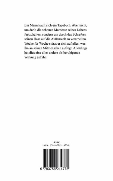 Ein Mann kauft sich ein Tagebuch. Aber nicht, um darin die schönen Momente seines Lebens festzuhalten, sondern um durch das Schreiben seinen Hass auf die Außenwelt zu verarbeiten. Woche für Woche stürzt er sich auf alles, was ihn an seinen Mitmenschen aufregt. Allerdings hat dies eine alles andere als beruhigende Wirkung auf ihn.