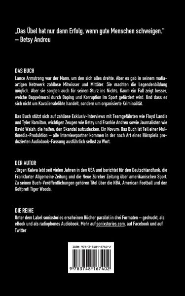 Lance Armstrong war der Mann, um den sich alles drehte. Aber es gab in seinem mafiaartigen Netzwerk zahllose Mitwisser und Mittäter. Sie waren es, die die Legendenbildung möglich machten. Und die am Ende für seinen Sturz ins Nichts sorgten. Der Fall zeigt, welche Doppelmoral durch Doping und Korruption im Sport gefördert wird. Und weshalb es sich nicht um Kavaliersdelikte handelt, sondern um organisierte Kriminalität.Das Buch stützt sich auf zahllose, exklusive Interviews mit Teamgefährten wie Floyd Landis, wichtigen Zeugen wie Betsy Andreu sowie Journalisten wie David Walsh, die halfen, den Skandal aufzudecken. So entstand eine ungewöhnliche, faszinierende Hörbuchfassung. In ihr kommen alle Gesprächspartner in Auszügen aus den Original-Aufnahmen selbst zu Wort.