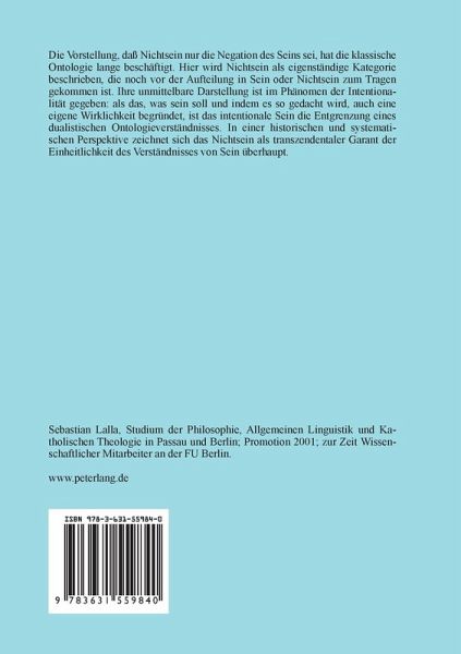Die Vorstellung, daß Nichtsein nur die Negation des Seins sei, hat die klassische Ontologie lange beschäftigt. Hier wird Nichtsein als eigenständige Kategorie beschrieben, die noch vor der Aufteilung in Sein oder Nichtsein zum Tragen gekommen ist. Ihre unmittelbare Darstellung ist im Phänomen der Intentionalität gegeben: als das, was sein soll und indem es so gedacht wird, auch eine eigene Wirklichkeit begründet, ist das intentionale Sein die Entgrenzung eines dualistischen Ontologieverständnisses. In einer historischen und systematischen Perspektive zeichnet sich das Nichtsein als transzendentaler Garant der Einheitlichkeit des Verständnisses von Sein überhaupt.