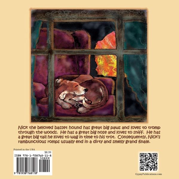 Nick the beloved basset hound has great big paws and loves to tromp through the woods. He has a great big nose and loves to sniff. He has a great big tail he loves to wag in time to his trot. Consequently, Nick's rambunctious romps usually end in a dirty and smelly grand finale.
