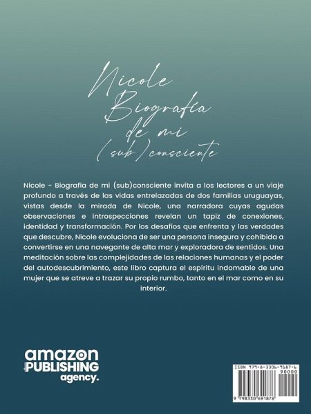 Nicole - Biografía de mi (sub)consciente invita a los lectores a un viaje profundo a través de las vidas entrelazadas de dos familias uruguayas, vistas desde la mirada de Nicole, una narradora cuyas agudas observaciones e introspecciones revelan un tapiz de conexiones, identidad y transformación. Por los desafíos que enfrenta y las verdades que descubre, Nicole evoluciona de ser una persona insegura y cohibida a convertirse en una navegante de alta mar y exploradora de sentidos. Una meditación sobre las complejidades de las relaciones humanas y el poder del autodescubrimiento, este libro captura el espíritu indomable de una mujer que se atreve a trazar su propio rumbo, tanto en el mar como en su interior.