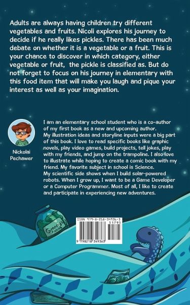 Adults are always having children try different vegetables and fruits. Nicoli explores his journey to decide if he really likes pickles. There has been much debate on whether it is a vegetable or a fruit. This is your chance to discover in which category, either vegetable or fruit, the pickle is classified . But do not forget to focus on his journey in elementary with this food item that will make you laugh and pique your interest as well as your imagination.