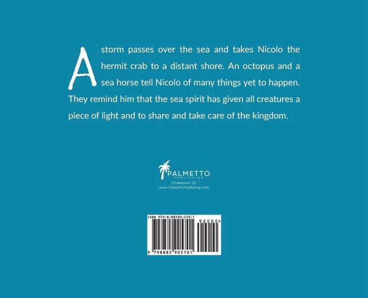 A storm passes over the sea and takes Nicolo the hermit crab to a distant shore. An octopus and a sea horse tell Nicolo of many things yet to happen. They remind him that the sea spirit has given all creatures a piece of light and to share ¿and take care of the kingdom.