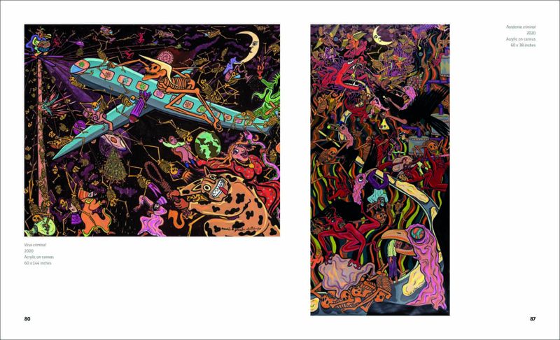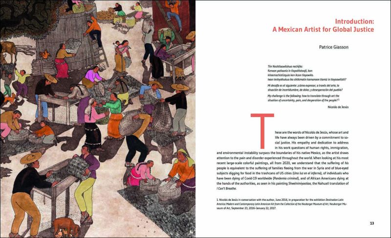 Nicolás de Jesús wirft in seiner Kunst einen so nostalgischen wie scharfsichtigen Blick auf unsere Welt. Künstlerische Traditionen seiner mexikanischen Heimat verschmelzen in seinen Werken mit Erfahrungen aus dem Großstadtleben von Chicago, Paris oder Jakarta. Auch der Sturm auf das Kapitol, die Unterdrückung von Migrantinnen und Migranten und Schwarzamerikanern in den USA sowie die Corona-Pandemie finden in seinen Arbeiten allegorische Darstellung. Der Katalog umfasst dreißig Jahre seines künstlerischen Schaffens.