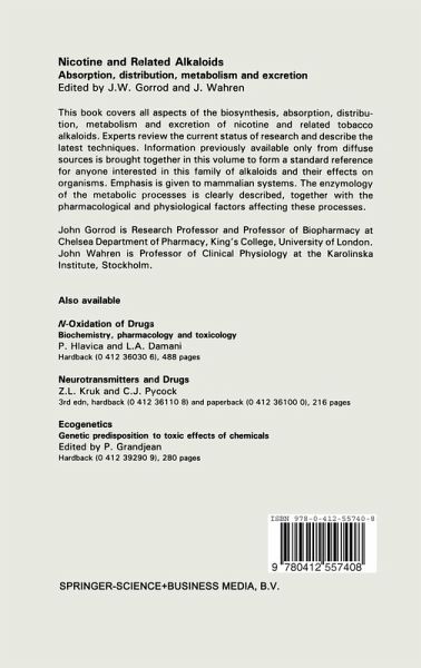 This is an essential reference volume for anyone interested in nicotine and tobacco. An international team of authors contribute to this comprehensive review of current knowledge of the pharmacokinetics and metabolism of nicotine.