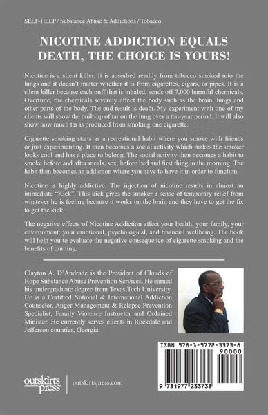 Nicotine, The World's Silent Killer Addiction is defined as giving up all that is important to you for the thing that you are addicted to. Nicotine is highly addictive. It is both a stimulant and a sedative to the central nervous system. When tobacco smoke is inhaled, the injection of Nicotine to the throat is exposed.to more than 7,000 chemicals. The result is almost an immediate "kick" because it causes a discharge of epinephrine from the adrenal cortex. This stimulates the central nervous system and other endocrine glands which causes a sudden release of glucose. Stimulation is then followed by depression and fatigue, leading to the abuser to seek more Nicotine. Nicotine is absorbed readily from tobacco smoke into the lungs, and it does not matter whether the tobacco smoke is from cigarettes, cigars or pipes. Nicotine is also absorbed readily when tobacco is chewed. With regular use of tobacco, levels of nicotine accumulate in the body during the day and persist overnight. Thus, daily smokers or chewers are exposed to the effects of nicotine for 24 hours each day. Nicotine taken in by cigarette or cigar smoking takes 7-10 seconds to reach the brain and it has a direct effect on the body. Smokeless tobacco, also known as; chew, snuff, spit tobacco, plug, chewing tobacco, chaw, dip, and other names, describes a variety of tobacco products that are not smoked by the consumer. Instead, this type of tobacco is usually placed in the mouth between the cheek or lower lip and the gums, where it mixes with saliva and releases juices that contain nicotine. The nicotine is then absorbed through the tissues in the mouth. "Life presents many choices; the choices we make determine our future." You control the path you take in life and remember, there are two types of consequences; negative and positive so the consequence is based on the choice you make. You have the power of choice to get rid of that deadly poison, nicotine, by thinking about its negative effects. There are many benefits to quit smoking, but there is no benefit for continued use of tobacco. If health improvements and more social freedom doesn't motivate you to quit, consider the financial rewards. To find out how much money you can save by quitting smoking, take the cost per day for your smoking materials and multiply it by 365 days. Surprised? Now multiply that amount by 10 so you can see how much you could save in the next 10 years. An effective way to make changes in the way you handle your addiction is to think about the price you have already paid. TO QUIT OR NOT TO QUIT; THE CHOICE IS YOURS!