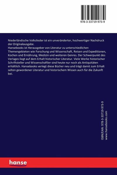 Niederländische Volkslieder ist ein unveränderter, hochwertiger Nachdruck der Originalausgabe.