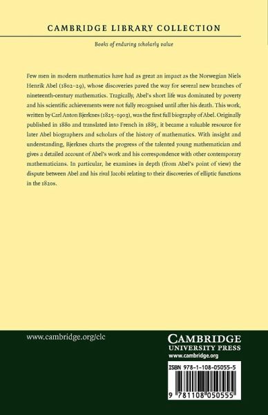 Few men in modern mathematics have had as great an impact as the Norwegian Niels Henrik Abel (1802-29), whose discoveries paved the way for several new branches of nineteenth-century mathematics. Tragically, Abel's short life was dominated by poverty and his scientific achievements were not fully recognised until after his death. This work, written by Carl Anton Bjerknes (1825-1903), was the first full biography of Abel. Originally published in 1880 and translated into French in 1885, it became a valuable resource for later Abel biographers and scholars of the history of mathematics. With insight and understanding, Bjerknes charts the progress of the talented young mathematician and gives a detailed account of Abel's work and his correspondence with other contemporary mathematicians. In particular, he examines in depth (from Abel's point of view) the dispute between Abel and his rival Jacobi relating to their discoveries of elliptic functions in the 1820s.