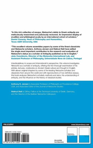 Typically, the first decade of Friedrich Nietzsche's career is considered a sort of précis to his mature thinking. Yet his philological articles, lectures, and notebooks on Ancient Greek culture and thought - much of which has received insufficient scholarly attention - were never intended to serve as a preparatory ground to future thought. Nietzsche's early scholarship was intended to express his insights into the character of antiquity. Many of those insights are not only important for better understanding Nietzsche; they remain vital for understanding antiquity today. Interdisciplinary in scope and international in perspective, this volume investigates Nietzsche as a scholar of antiquity, offering the first thorough examination of his articles, lectures, notebooks on Ancient Greek culture and thought in English. With eleven original chapters by some of the leading Nietzsche scholars and classicists from around the world and with reproductions of two definitive essays, this book analyzes Nietzsche's scholarly methods and aims, his understanding of antiquity, and his influence on the history of classical studies.