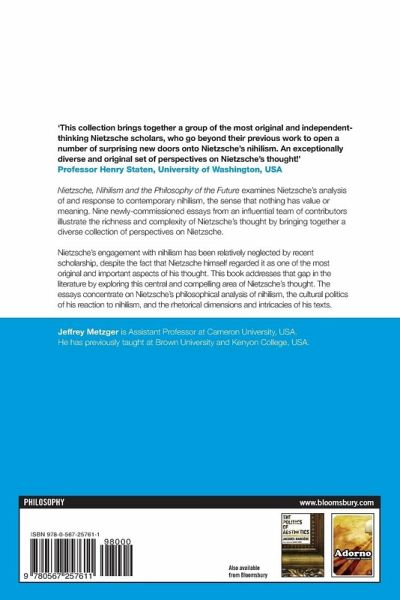 Nietzsche, Nihilism and the Philosophy of the Future examines Nietzsche's analysis of and response to contemporary nihilism, the sense that nothing has value or meaning. Eleven newly-commissioned essays from an influential team of contributors illustrate the richness and complexity of Nietzsche's thought by bringing together a diverse collection of perspectives on Nietzsche. Nietzsche's engagement with nihilism has been relatively neglected by recent scholarship, despite the fact that Nietzsche himself regarded it as one of the most original and important aspect of his thought. This book…mehr
