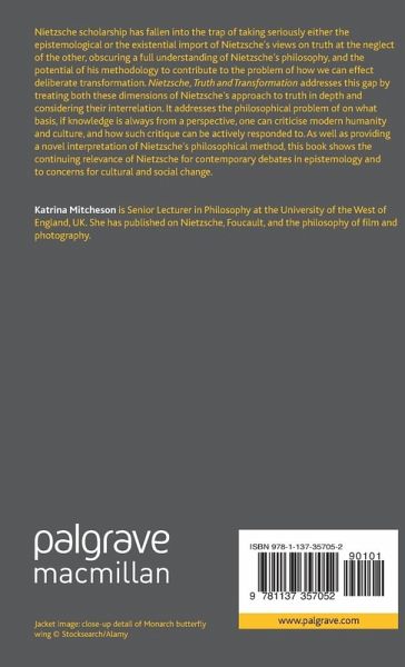 Providing a novel interpretation of Nietzsche's philosophical method, Nietzsche, Truth and Transformation addresses the philosophical problem of on what basis, if knowledge is always from a perspective, one can criticise modern humanity and culture, and how such critique can be actively responded to.