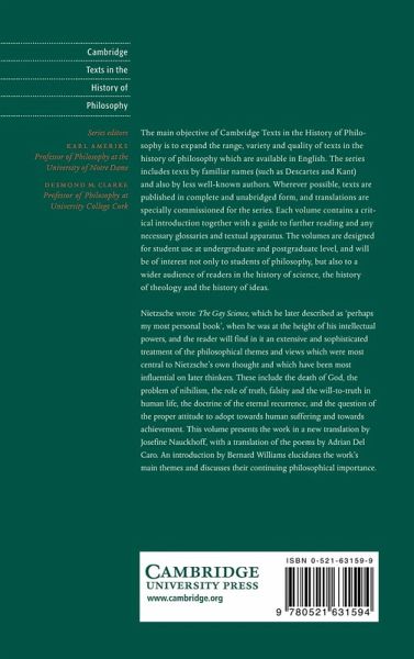 The Gay Science is an extensive and sophisticated treatment of the philosophical themes and views which were most central to Nietzsche's own thought and which have been most influential on later thinkers. This volume presents the work in a new translation, with a philosophical introduction by Bernard Williams.