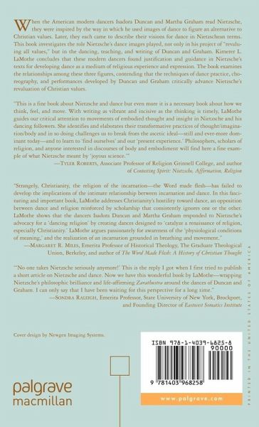 "LaMothe's succulent attention to the phenomenology of dance technique draws persuasive power from beyond the writing itself. Nietzsche's Dancers is not only a study in the recreation of religious values; it is an expression of the bodily conditions it explores. And, in this regard, the joyous engagement expressed on every page refers readers to lived practices of kinetic fluency as the basis for affirmation of life." - Journal of the American Academy of Religion"Strangely, Christianity, the religion of the incarnation - the 'Word made flesh' - has failed to develop the implications of the intimate relationship between incarnation and dance. In this fascinating and important book, LaMothe addresses Christianity's hostility toward dance, an opposition between dance and religion reinforced by scholarship that consistently ignores one or the other. LaMothe shows that the dancers Isadora Duncan and Martha Graham responded to Nietzsche's advocacy for a 'dancing religion' by creating dances designed to 'catalyze a renaissance of religion, especially Christianity.' LaMothe argues passionately for awareness of the 'physiological conditions of meaning,' and the realization of an incarnation grounded in breathing and movement." - Margaret R. Miles, Emerita Professor of Historical Theology, The Graduate Theological Union, Berkeley, and author of The Word Made Flesh: A History of Christian Thought