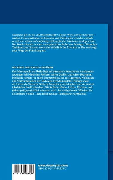 Nietzsche gilt als ein "Dichterphilosoph", dessen Werk sich der konventionellen Unterscheidung von Literatur und Philosophie entzieht. Das betrifft zum einen seine offensichtliche Vorliebe für literarische Schreibweisen und Textformen, die ein wesentlicher Grund dafür ist, dass Nietzsche sich so schwer auf eindeutige philosophische Positionen festlegen lässt. Damit hängt zum anderen zusammen, dass er, der akademisch ausgebildete Philologe, sich zeit seines (bewussten) Lebens intensiv mit der abendländischen Literatur von der Antike bis zu seiner Gegenwart beschäftigte. Und so wie sein eigenes Schreiben durch vielfältige literarische Einflüsse geprägt wurde, übte er umgekehrt auch eine immense Wirkung auf die nachfolgende Literatur aus. Der Band erkundet in einer exemplarischen Reihe von Beiträgen Nietzsches Verhältnis zur Literatur sowie das Verhältnis der Literatur zu ihm und zeigt neue Wege der Forschung auf.