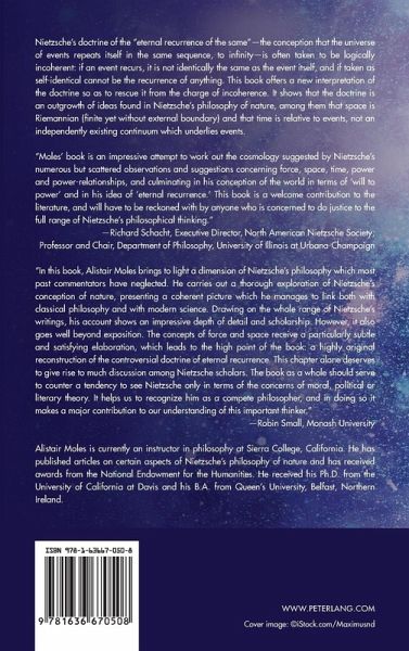 "Moles' book is an impressive attempt to work out the cosmology suggested by Nietzsche's numerous but scattered observations and suggestions concerning force, space, time, power and power-relationships, and culminating in his conception of the world in terms of 'will to power' and in his idea of 'eternal recurrence.' This book is a welcome contribution to the literature, and will have to be reckoned with by anyone who is concerned to do justice to the full range of Nietzsche's philosophical thinking."-Richard Schacht, Executive Director, North American Nietzsche Society; Professor and Chair, Department of Philosophy, University of Illinois at Urbana-Champaign