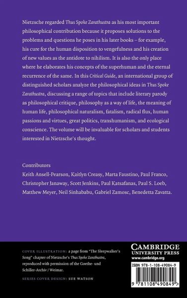 Nietzsche regarded Thus Spoke Zarathustra as his most important philosophical contribution. It is also the only place where he elaborates his concepts of the superhuman and the eternal recurrence of the same. In this Critical Guide, an international group of distinguished scholars analyze the philosophical ideas in this famous book.
