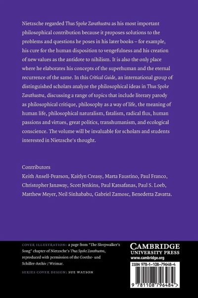 Nietzsche regarded Thus Spoke Zarathustra as his most important philosophical contribution. It is also the only place where he elaborates his concepts of the superhuman and the eternal recurrence of the same. In this Critical Guide, an international group of distinguished scholars analyze the philosophical ideas in this famous book.